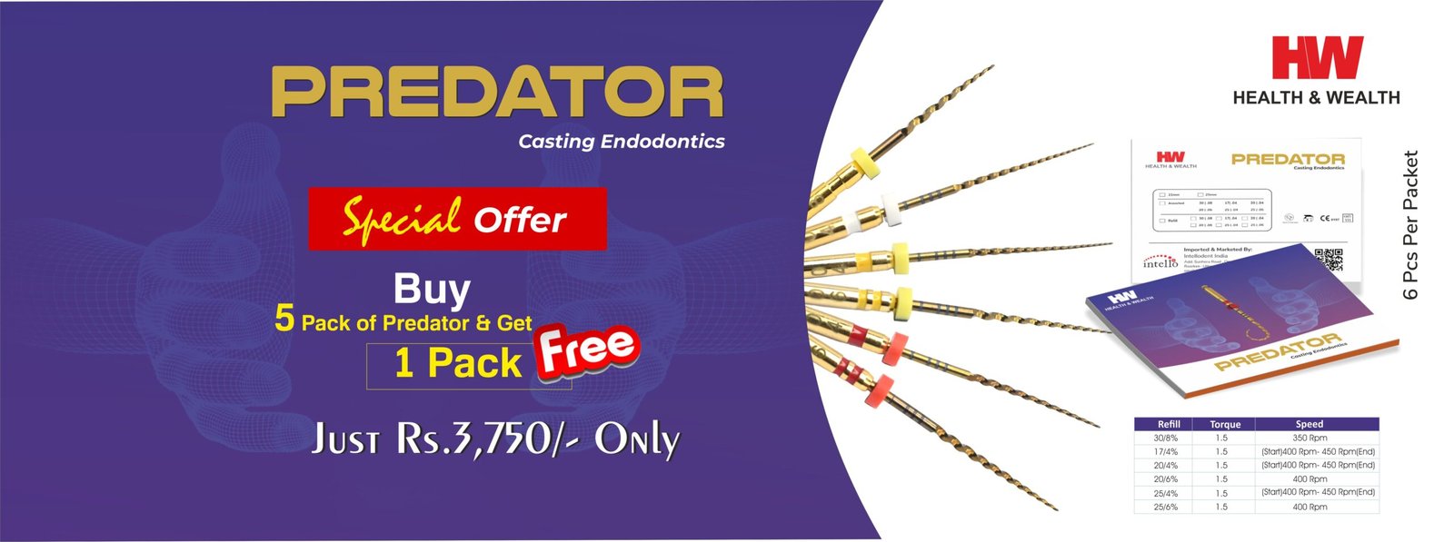 H&W NITI Heat Treated PREDATOR New Rotary 6 file system